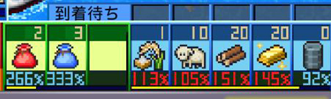 3、界面正下方显示的蓝色商品代表现在流行度提升 红色商品表示流行度下跌,显示的数量表示你现在持有多少个,