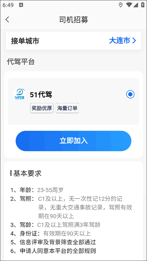 这里要说明的是,高德代驾不需要交钱,注册后,主要驾龄超过3年,不需要面试;