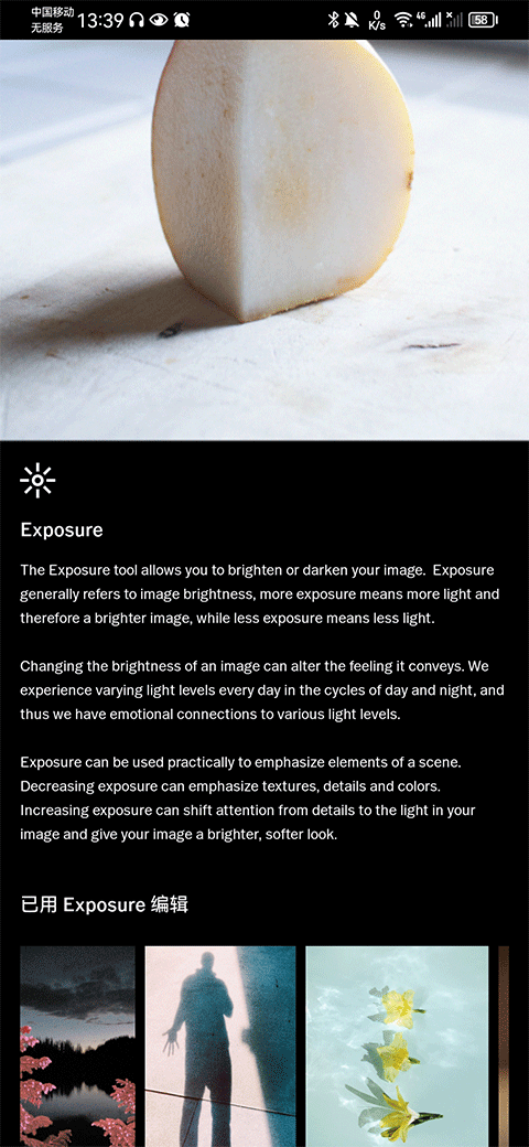 6、若不了解曝光度、对比度是什么,以及使用后会有什么区别,可以点击中间的文字。