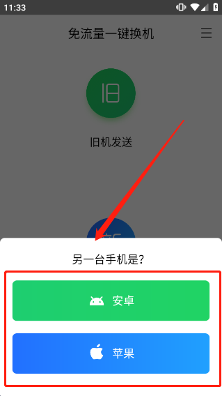 3、点击之后,下方会提示另一台手机所属的设备类型。此时点击安卓手机选项或者苹果手机选项。