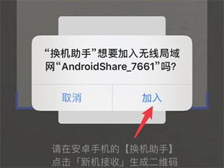 4、比如点击安卓手机之后,在安卓手机上选择新机接收并扫描二维码。