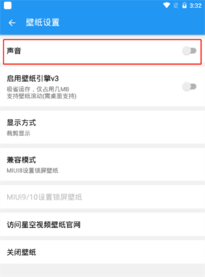 8、找到声音的功能,然后把这个功能打开,视频应用到手机壁纸上就有声音了,然后在退回视频预览界面,在点击下方的“设为壁纸”即可。