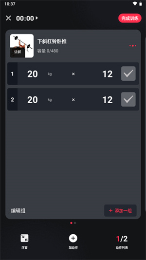 4、添加完成后在编辑页设置锻炼量,最后点击完成训练就可以了。