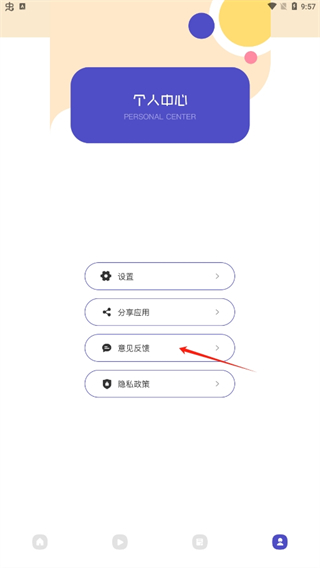 5、在个人中心页面当中,拥有意见反馈、分享应用等功能,如果你有很好的建议可以反馈给给官方,并留下你的联系方式。