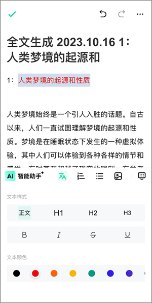 用户可以文章生成之后,继续对文章进行编辑,可以修改其中的句子,帮助文章变得更符合自己的气质。