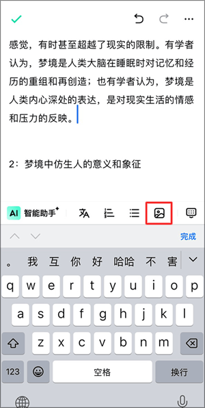 5、还可以在生成的文本中插入图片,将光标放在想要插入图片的位置,点击图标,就可以了。
