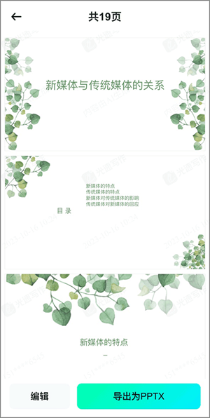 输入PPT标题,选择风格,输入内容要求,即可生成全套ppt,导出保存。