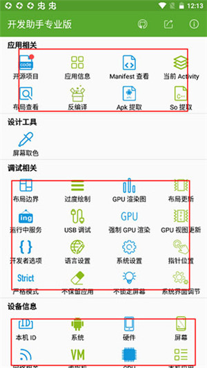 开发助手专业版,英文名“Dev Tools”,是杭州时光闪耀科技有限公司基于 Android 系统设计推出的一款 Android 开发工具软件。它具备丰富的系统开发功能,能为用户提供布局边界、过度绘制、GPU 渲染图、USB 调试等多达 30 项功能服务,从而有效提升用户日常系统开发的效率。