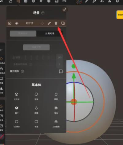 如箭头所示,在“场景”下选框里找到类似垃圾桶的标志点击。