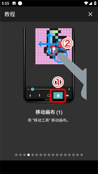 ②用两个手指拖动画布移动