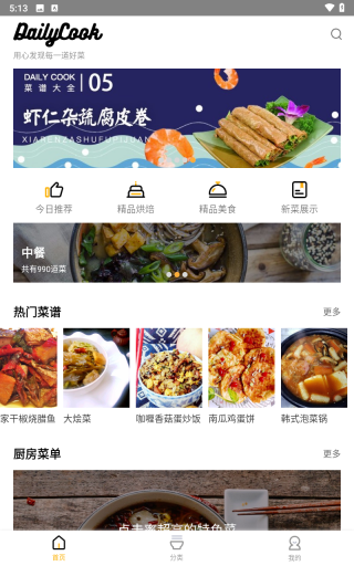 3、分类栏根据菜的类型分类,用户不知道想做什么菜时,可以来这里寻找