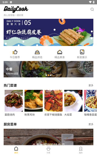 2、软件首页为每日推荐菜谱,用户可以选择自己喜欢的菜进行学习制作
