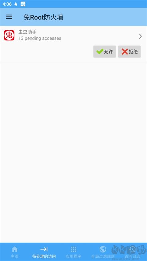 3、然后在待处理的访问中就可以看到请求的应用,根据自己的需求来点击是否允许即可。