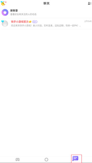 1、打开快手小游戏首页,想要邀请好友玩游戏时点击“聊天”图标