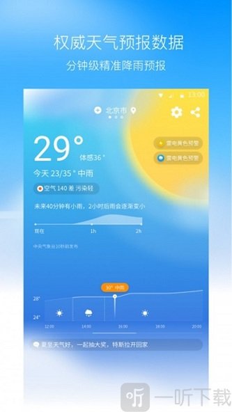 2. 拥有强大的天气推送功能,短时降雨信息、今明两天的天气预报以及灾害预警,都能在第一时间精准送达。