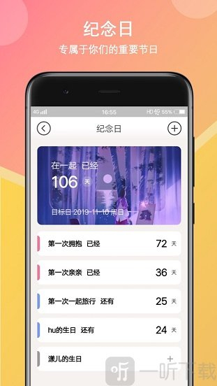 记录生活里的美好瞬间,将两人的珍贵时刻留存于此。随时拿出手机查看,那些瞬间仿若就在眼前。支持以文字、图片与表情进行记录,打造专属情侣的私密空间。用户能依个人喜好记录,系统还会在纪念日时贴心提醒。