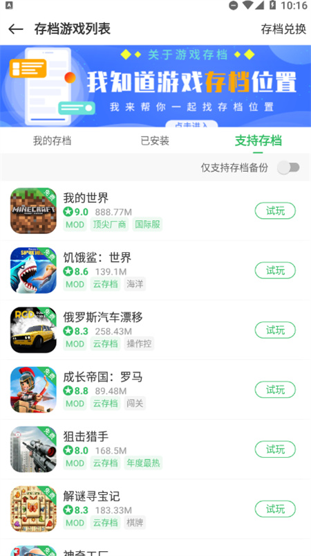 2、接下来,我们能够看到包含支持存档游戏的列表内容,位于该列表中的游戏均支持云存档。