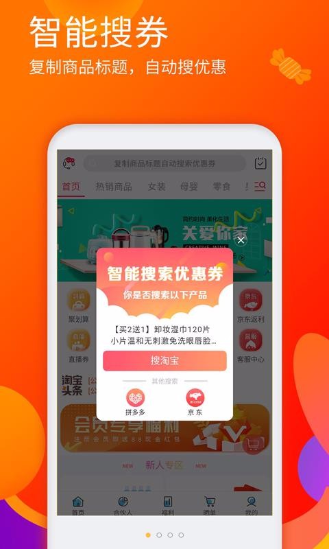 智能搜索,快速复制商品标题,自动搜索优惠券;