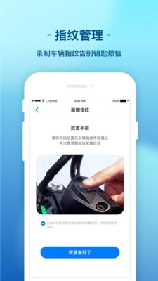 3、配置:指纹录入、删除,爱车共享,报警推送。
