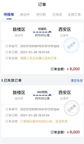 1、全部的运输订单都展示在平台里,用户能够清楚的进行查看;