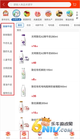 3、你还能借助分类功能,发现各式各样的牛奶,从而迅速挑选出自己的心头好。