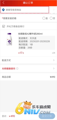 5、请填写您的收货地址,然后点击提交订单,这样就能完成牛奶预订,进而尽情畅享新鲜的乳品生活啦!
