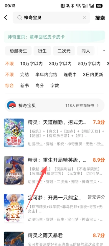 2、然后可以通过搜索找到自己喜欢的小说,点击进去