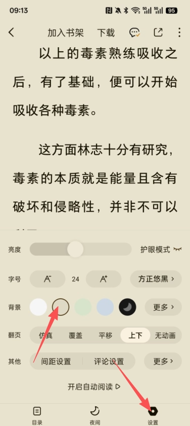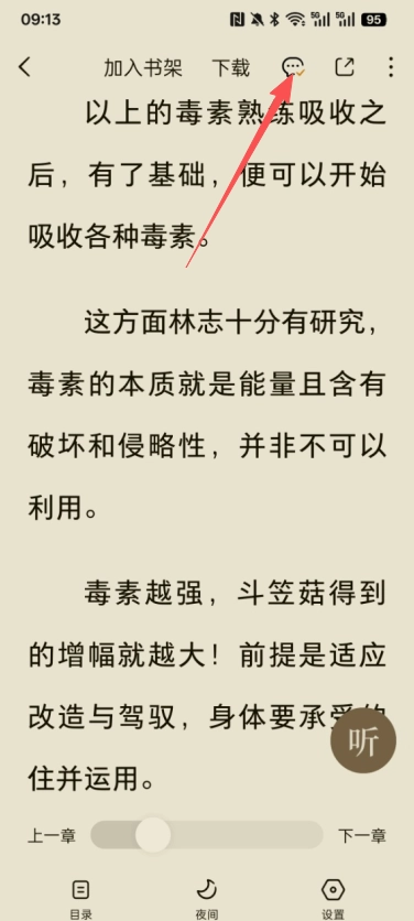 您好,近期升级了评论入口,请您先升级番茄小说最新版本,进入小说阅读页面,点击页面中部调出菜单栏,再点击右上方发言的图标(如下图),即可一键开启/隐藏所有评论内容 (包括章评和段评)