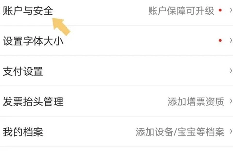 打开京东,进入【我的】页面,点击右上角的设置图标,在弹出的新页面里,点击【账户与安全】选项。