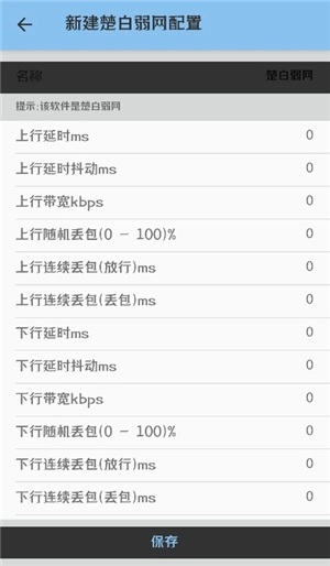5、包括连续丢包、延时、带宽、延时抖动等各种参数均可自定义,保存后设置后点击启动即可