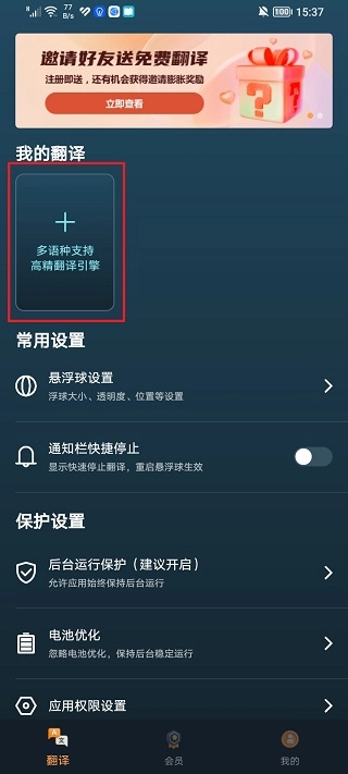 支持自动翻译,输入翻译,全屏翻译,框选翻译,滑动翻译。