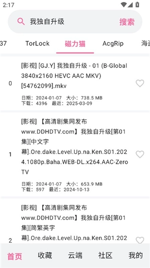 4、软件内包含磁力猫、AcgRip、TorLock、1337等多种磁力引擎,用户能够在这些引擎间来回切换,以寻觅更多资料。