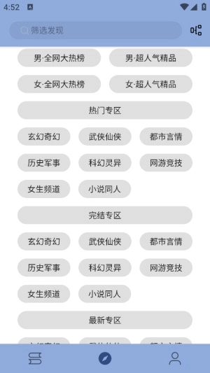 1、在搜索框中输入您想看的小说名称或作者,然后选择对应的分类和标签进行筛选,很方便