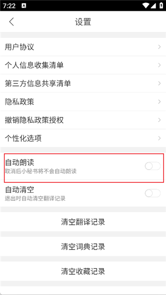 3、进来之后往下滑找到自动朗读开启即可