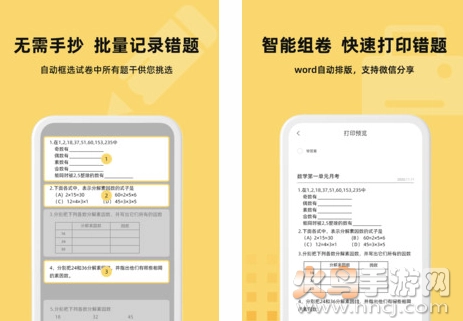 【分享或打印】能够把选中的错题迅速组卷,还会自动排版成word文档,可直接连接打印机进行打印。同时支持将word分享至QQ和微信,方便随时把试卷分享给他人。