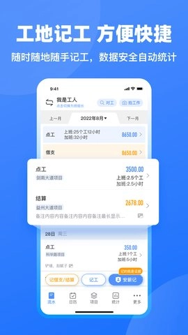 4、记工记账数据清晰一目了然,方便查阅。