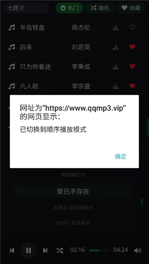 5、轻点位于最下方的播放设置按钮,便能切换随机播放、顺序播放、单曲循环等多种听歌模式。