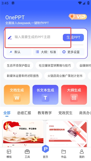 1、在本站安装oneppt,打开进入软件,在红框中输入关键词