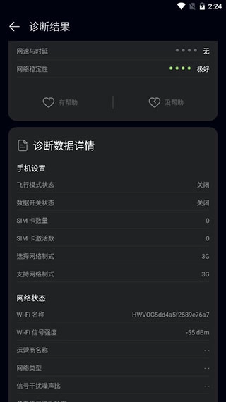4、在诊断结果页面中,查看手机网络诊断结果,如图所示