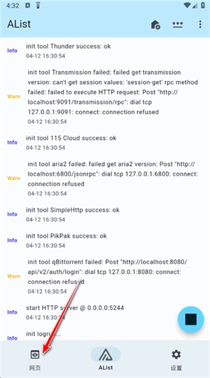 如何使用alist 1. 开启AList后,首先点击下图所示按钮来启动服务。