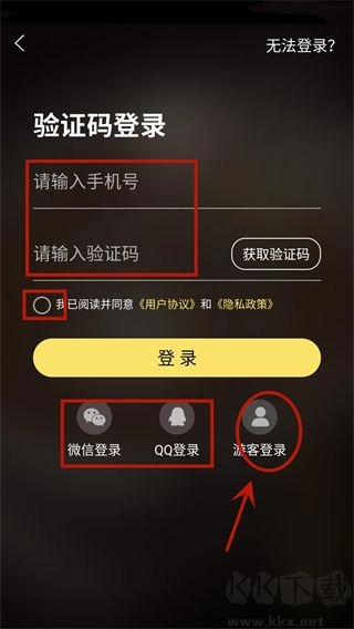 2、首次使用软件时,你既可以通过手机号验证码进行注册/登录,也支持微信、QQ一键授权登录。要是你想先体验一下,还能选择游客登录呢!
