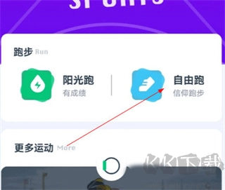 1、打开闪动校园,点击首页“自由跑”