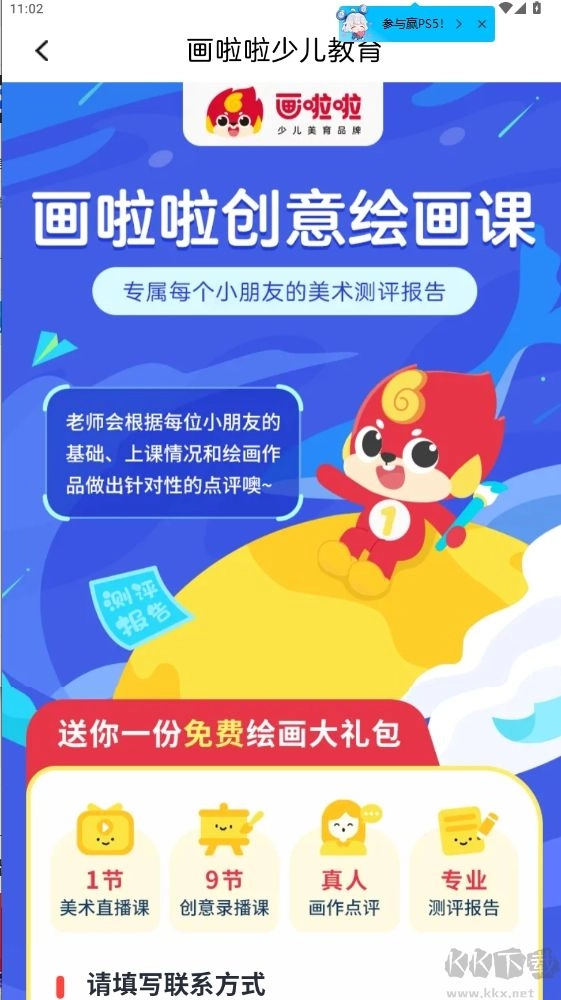 画啦啦美术课堂,专为儿童量身打造的在线美术学习软件。借助趣味课程,有效激发孩子的绘画兴趣。它采用互动视频教学形式,配备动态课件以及白板演示功能,方便学生观看生动的动画教程,同时教师能实时进行示范指导。此外,画啦啦美术课堂十分注重互动体验的设计,孩子们在学习时能够与同伴交流协作,学得开心快乐。有需要的朋友,欢迎来kk。