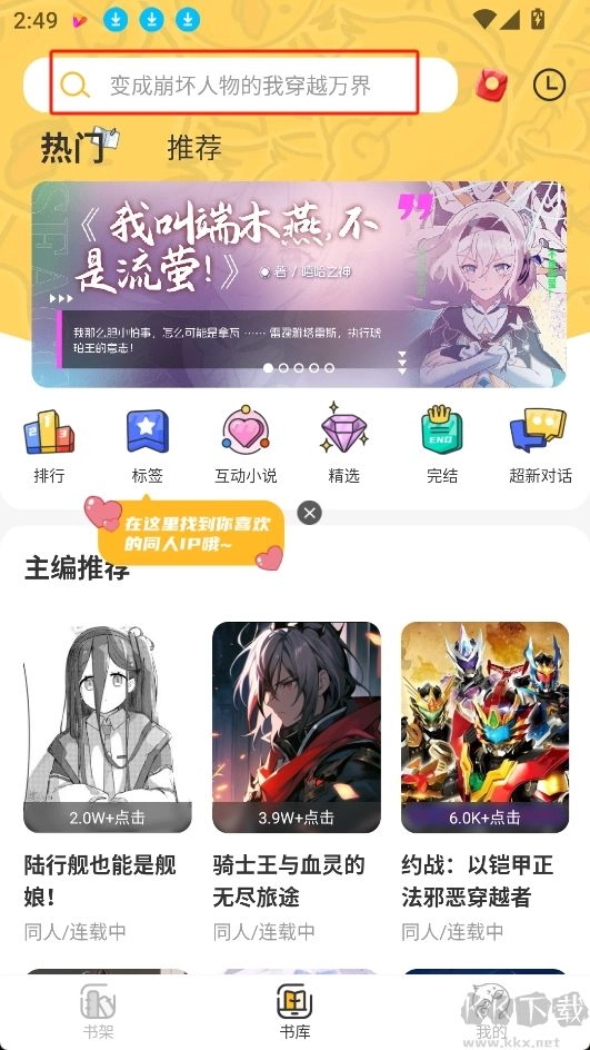 1.进入主页,点击最上方的搜索框搜索自己想要阅读的小说;