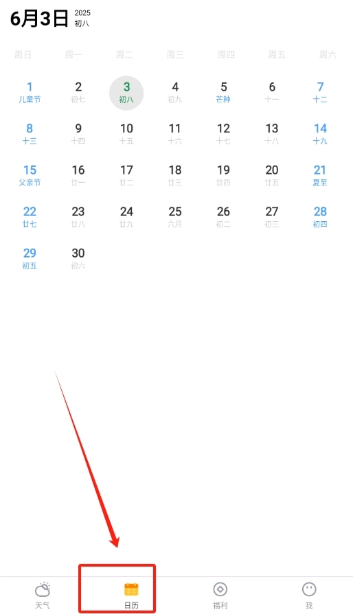 2、在软件界面中,找到日历入口,轻轻一点,就能查看日期、节假日等日历相关信息。
