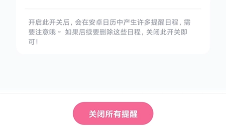 3、进入提醒页面,点击下方的关闭所有提醒即可