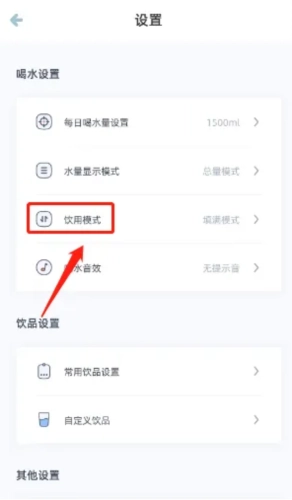 3、进入设置,在页面中找到并点击【饮用模式】