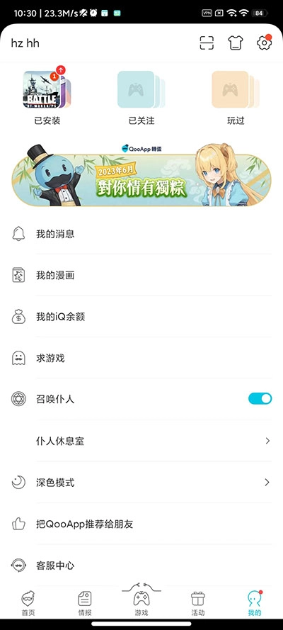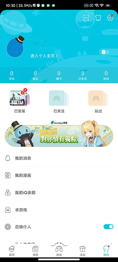 2、进入QooApp主界面,点击“我的”。