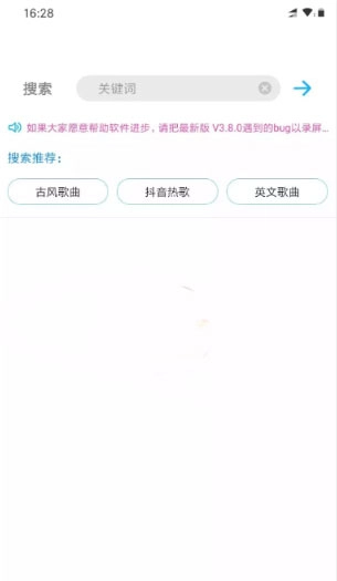 1、先在本站完成歌词适配的安装,接着打开并进入应用。之后在搜索栏中输入你想查找的歌曲相关内容,既可以输入歌曲类型,也能直接搜索具体的某首歌或者歌词片段。