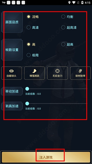 4、解锁完成后,可依据自身使用需求进行参数设置,随后点击注入游戏即可。